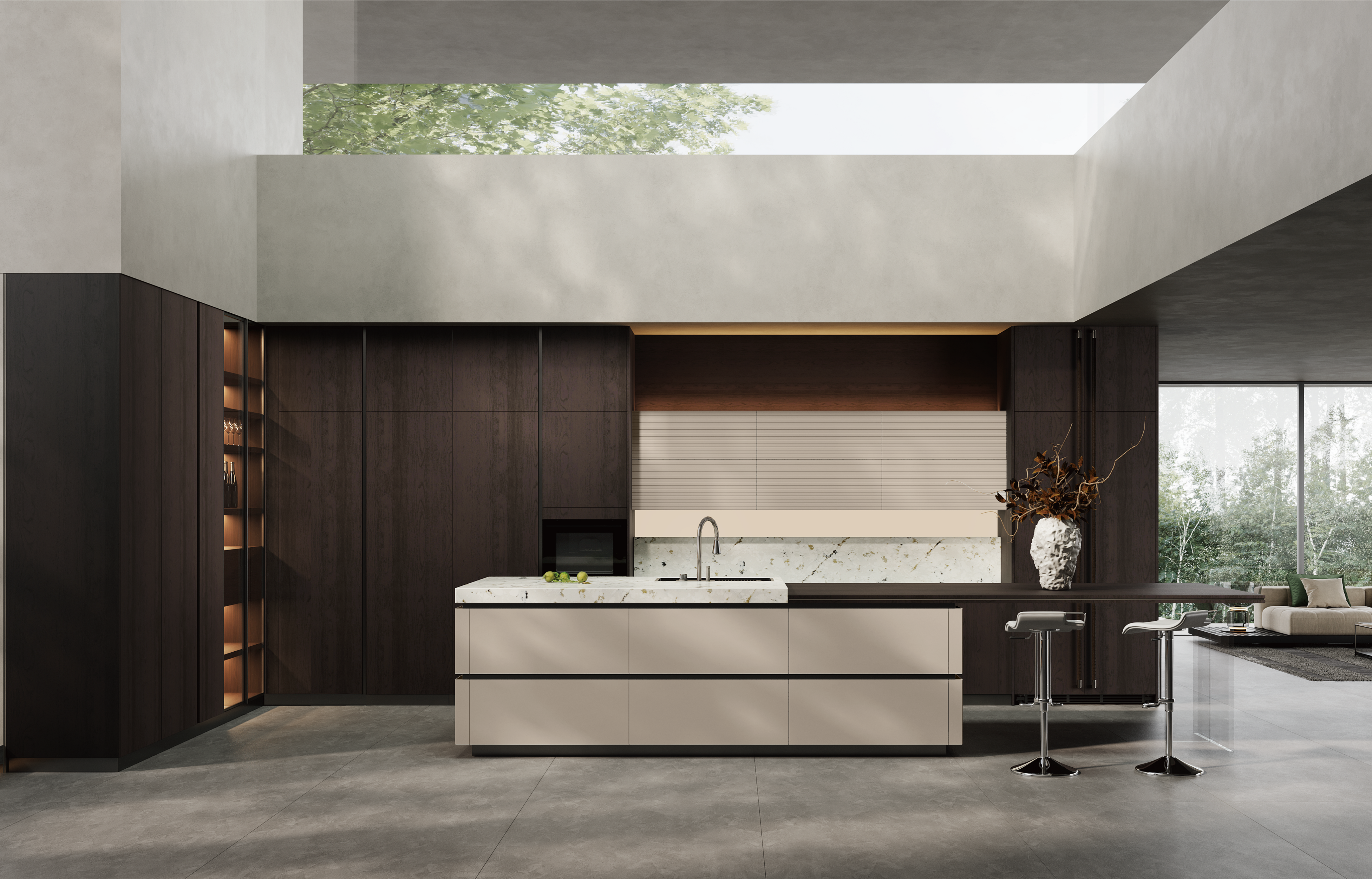 通过Z6·尊龙厨柜量体裁柜,定制出适合主厨下厨的烹饪区和洗涤区的舒适高度。